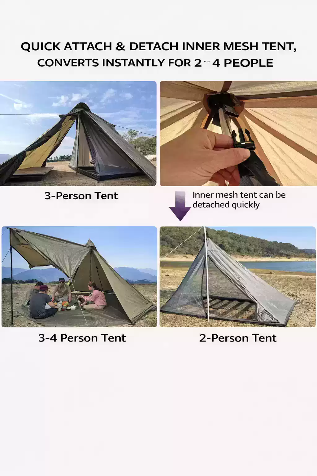 Planning a winter hiking trip or a survival mission? You will find this waterproof tipi tent is surprisingly portable and easy to carry. We used a single-pole design to make setup fast and simple in the cold. This 2 3 4 person tent also serves as an excellent drying room for your wet gear. Its tall peak allows for great heat circulation from your stove. Choose this hot tent for your next sub-zero outdoor journey. It is built to turn the harshest winter into a comfortable stay.