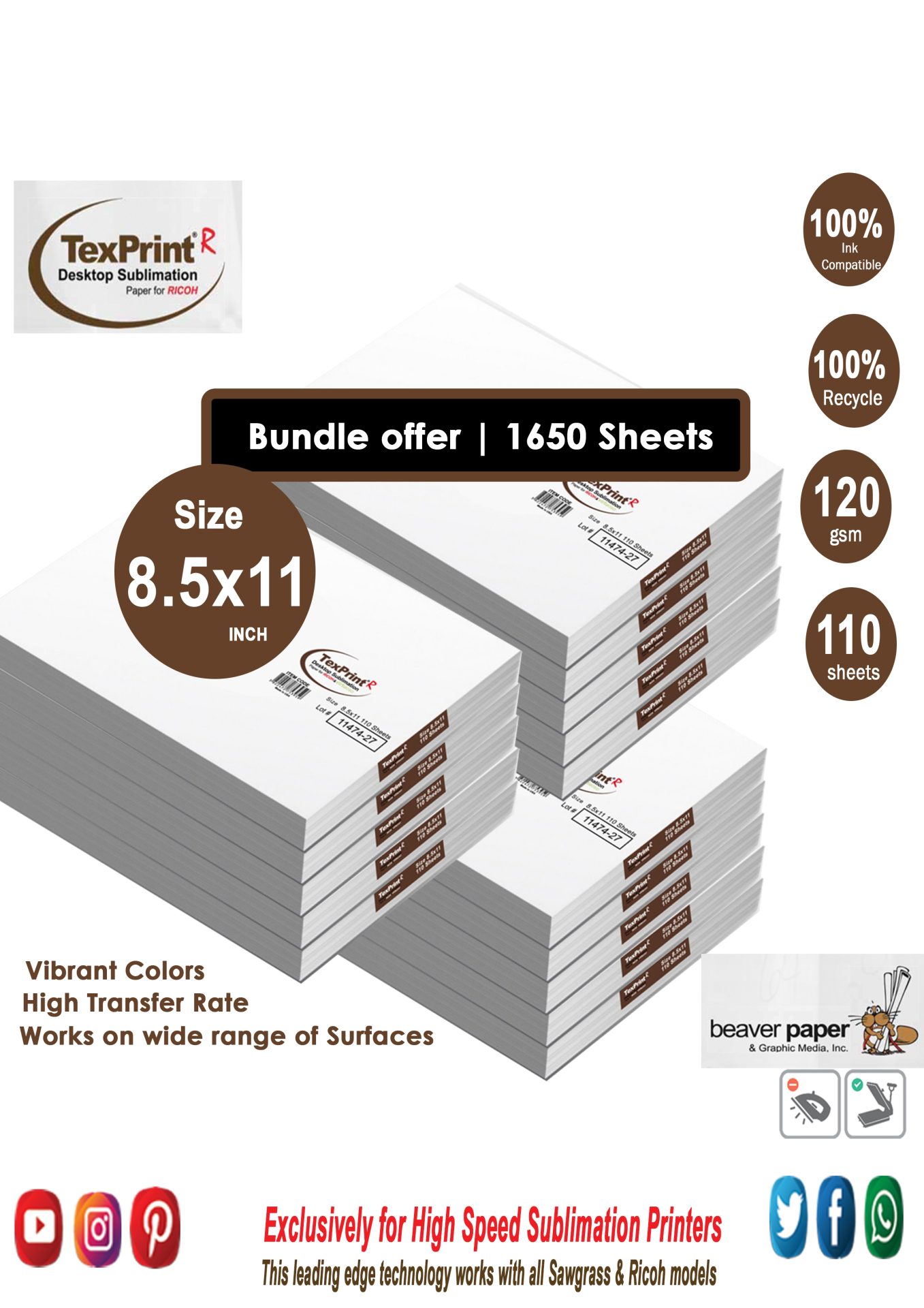 TexPrint® R Sublimation Paper| 8.5″x 11″ | 1650 Sheets | 120 g | * Free Shipping USA *