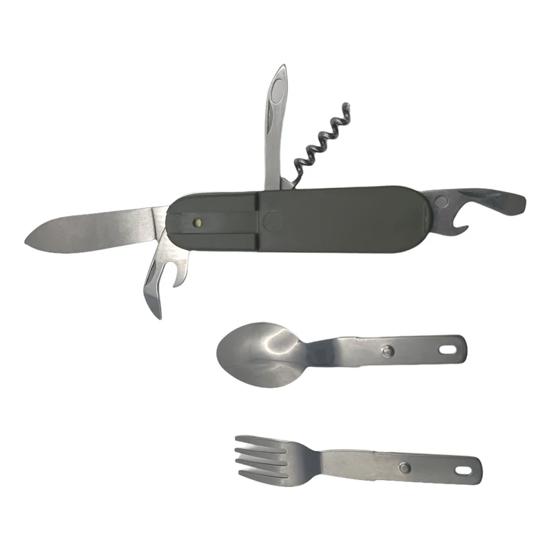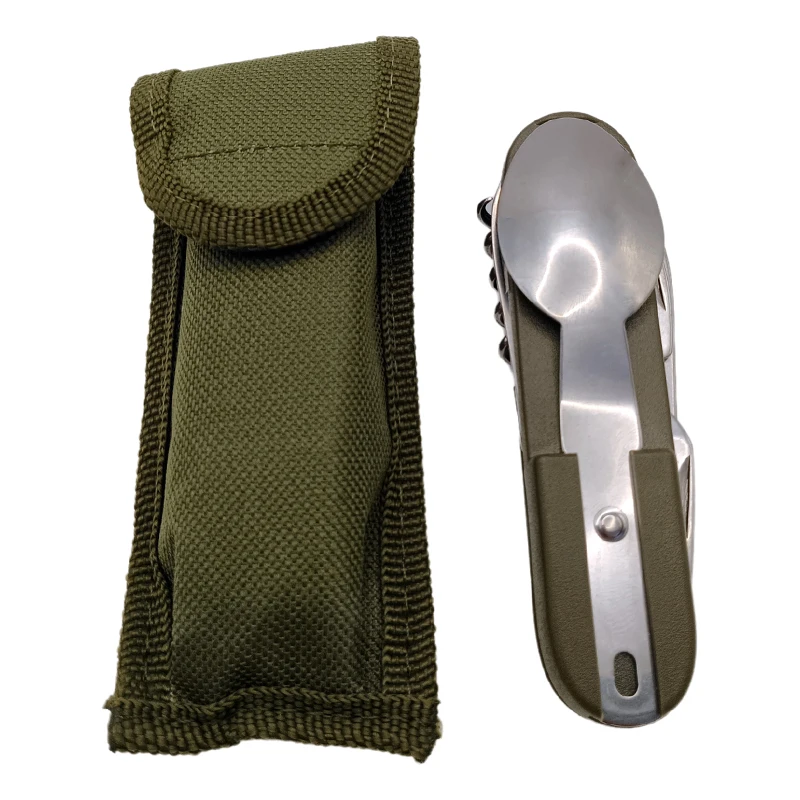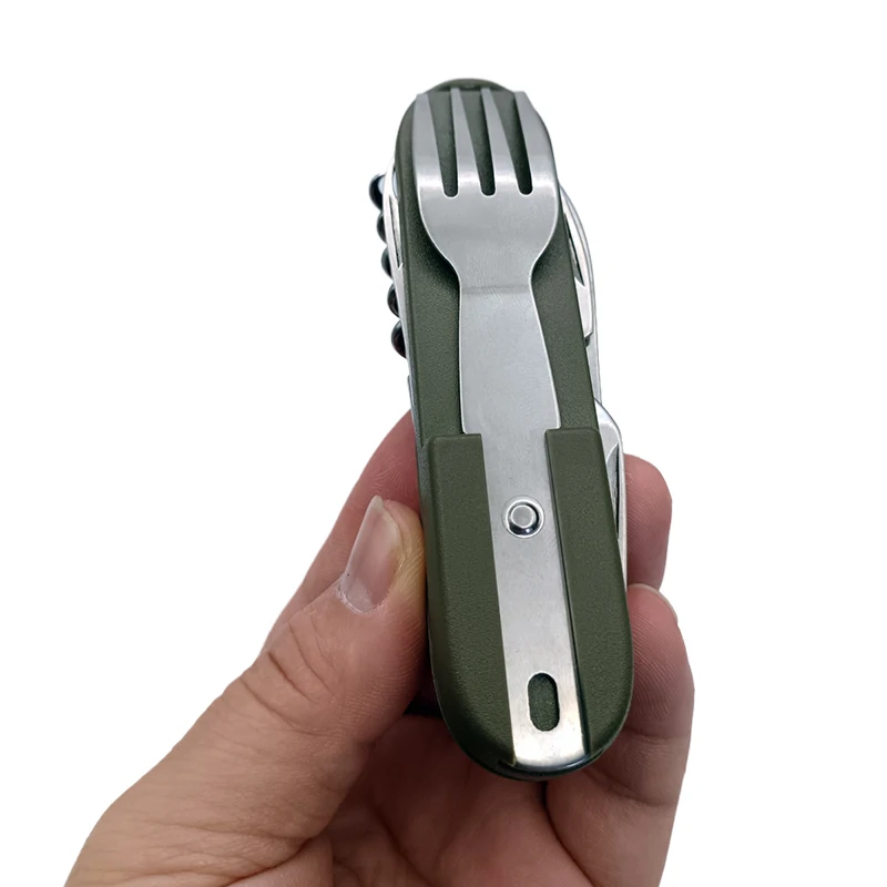 This multifunctional set includes a knife, spoon, fork, bottle opener, can opener, and other handy tools. Consequently, it serves all your basic dining needs without the need for multiple utensils. This all-in-one tool helps you save space and reduces packing hassle.