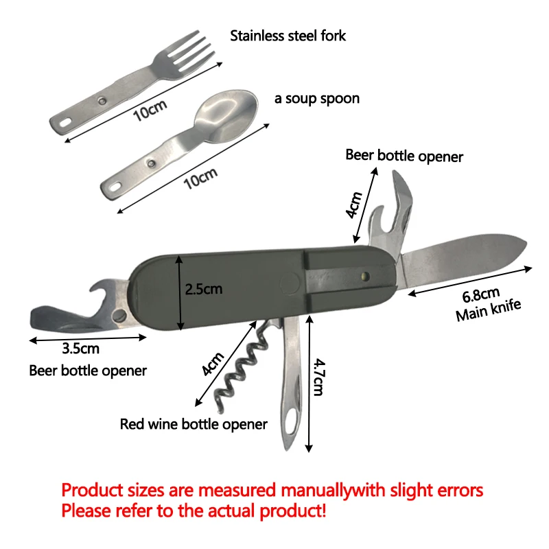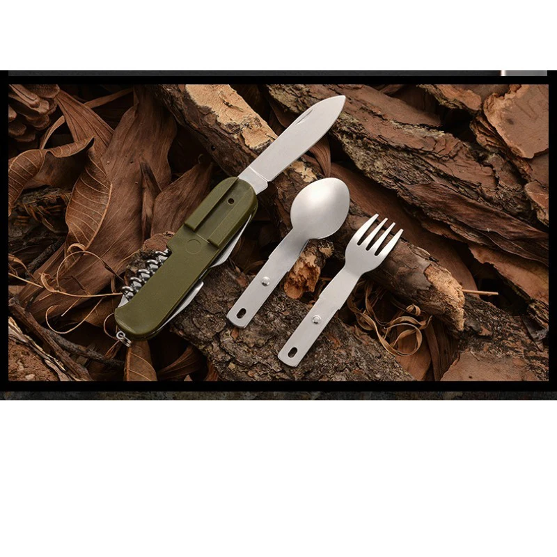 7-in-1 Multifunctional Outdoor Cutlery – Portable Foldable Knife, Spoon, Fork, Opener, and Can Opener for Camping, Hiking, and Picnics