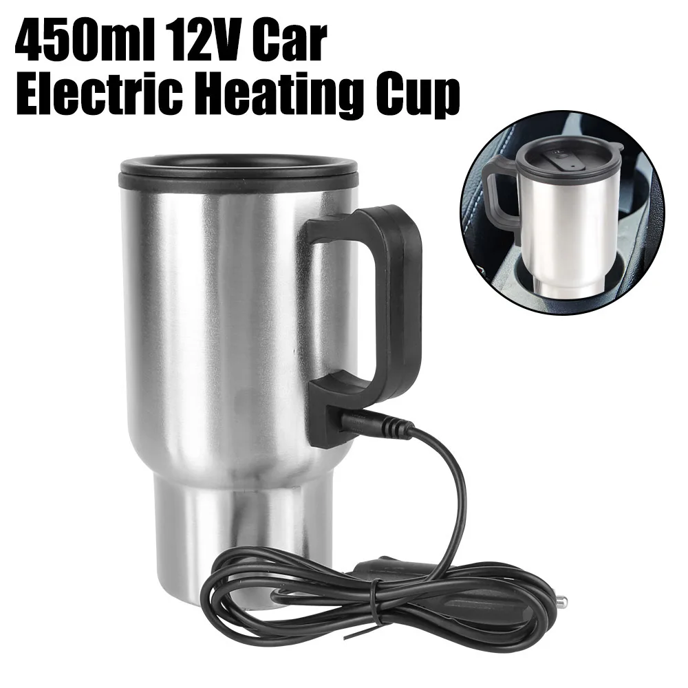 12V Electric Heating Camping Kettle| Heating Car Kettle – 450ml Stainless Steel Thermal Mug