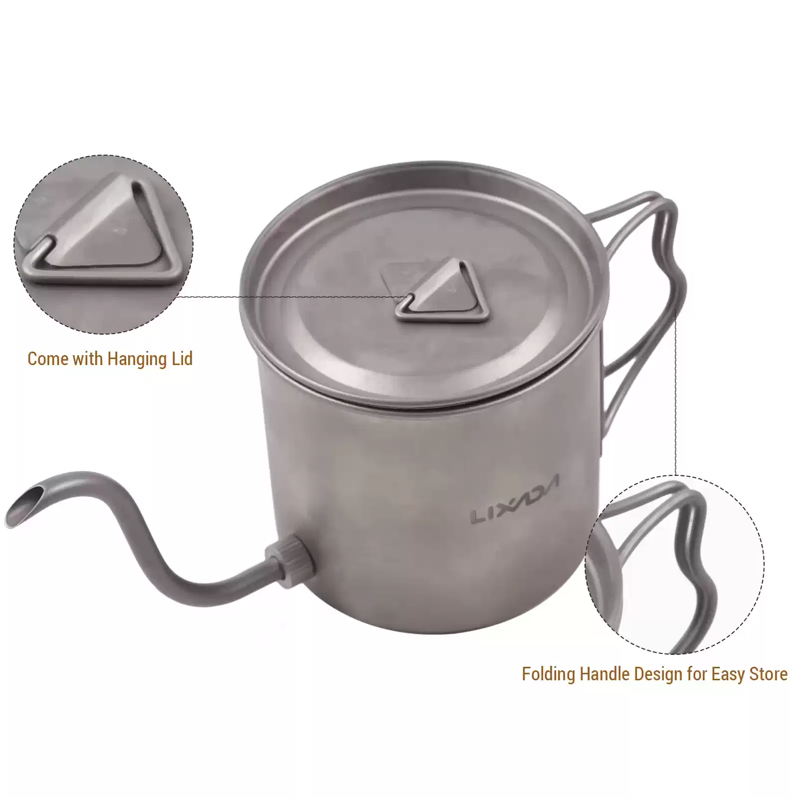 Our 400ml titanium coffee pour over kettle leads the market in precision outdoor brewing. Notably, the gooseneck spout allows for a steady, controlled stream, which is vital for manual extraction during a nature hike. This feature is perfect for a slow morning at a weekend getaway site. Thus, it is more advanced than a standard wide-mouth camping pot. The device offers a compact solution for outdoor sports. For instance, use the stove top coffee pot function on a micro-burner for a quick picnic refreshment.