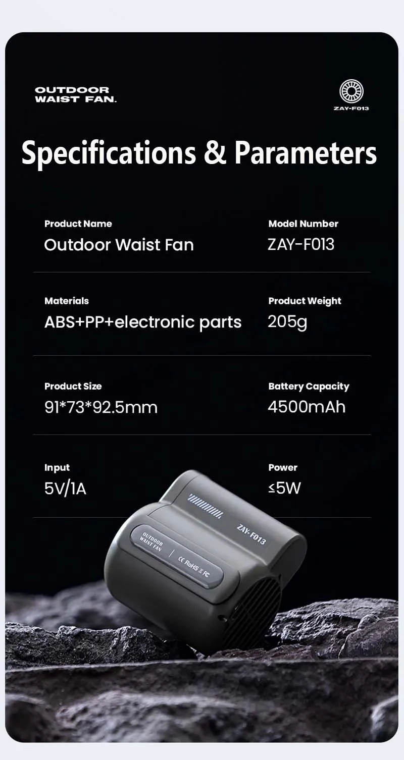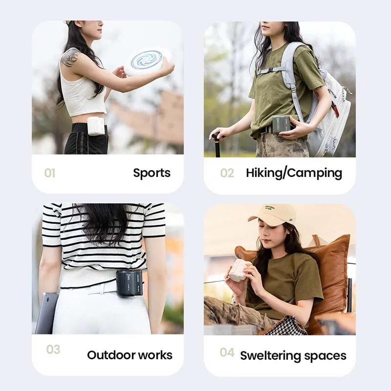 The fan’s smart clip design lets you attach it securely to your belt, waistband, or backpack strap. In addition, it can hang under your shirt or jacket to provide discreet, direct cooling exactly where you need it most. This makes it an ideal choice for camping, outdoor work, or festivals.