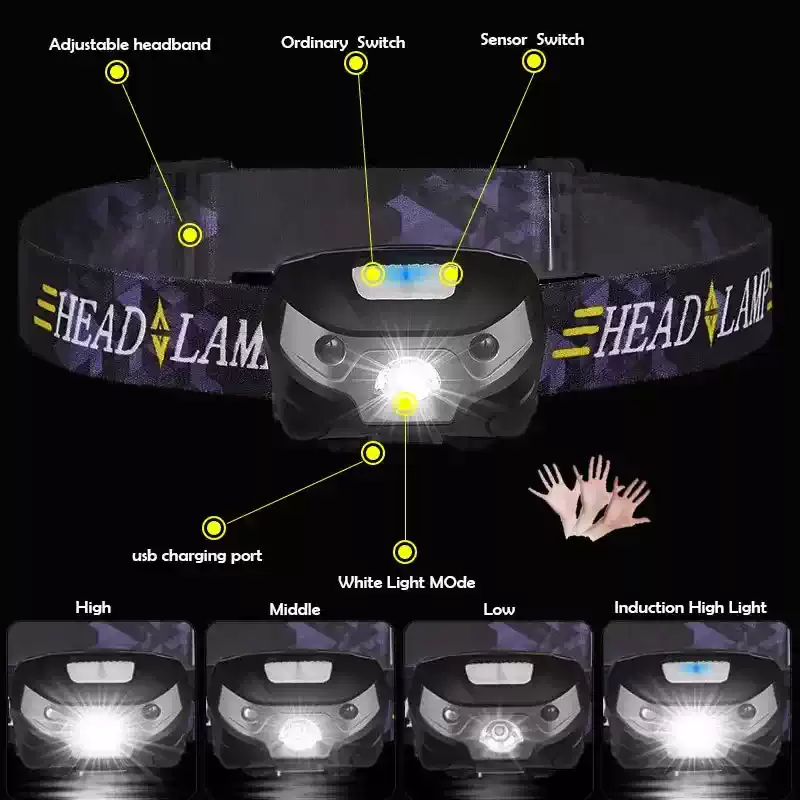Body Motion Sensor Headlight – Rechargeable USB Torch Lamp