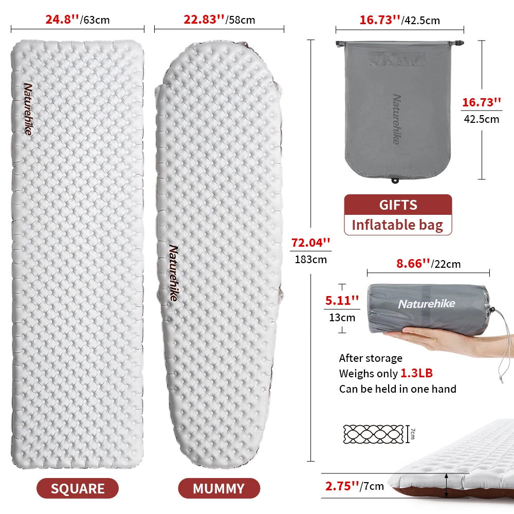 Weighing in at just a few hundred grams, the Naturehike Inflatable Mat is incredibly lightweight, making it the perfect companion for minimalist backpackers and hikers. It easily folds up into a compact size and fits into your backpack or luggage, so you won’t be burdened with unnecessary weight. The included storage bag makes it easy to carry and pack, ensuring you can take it anywhere without hassle.