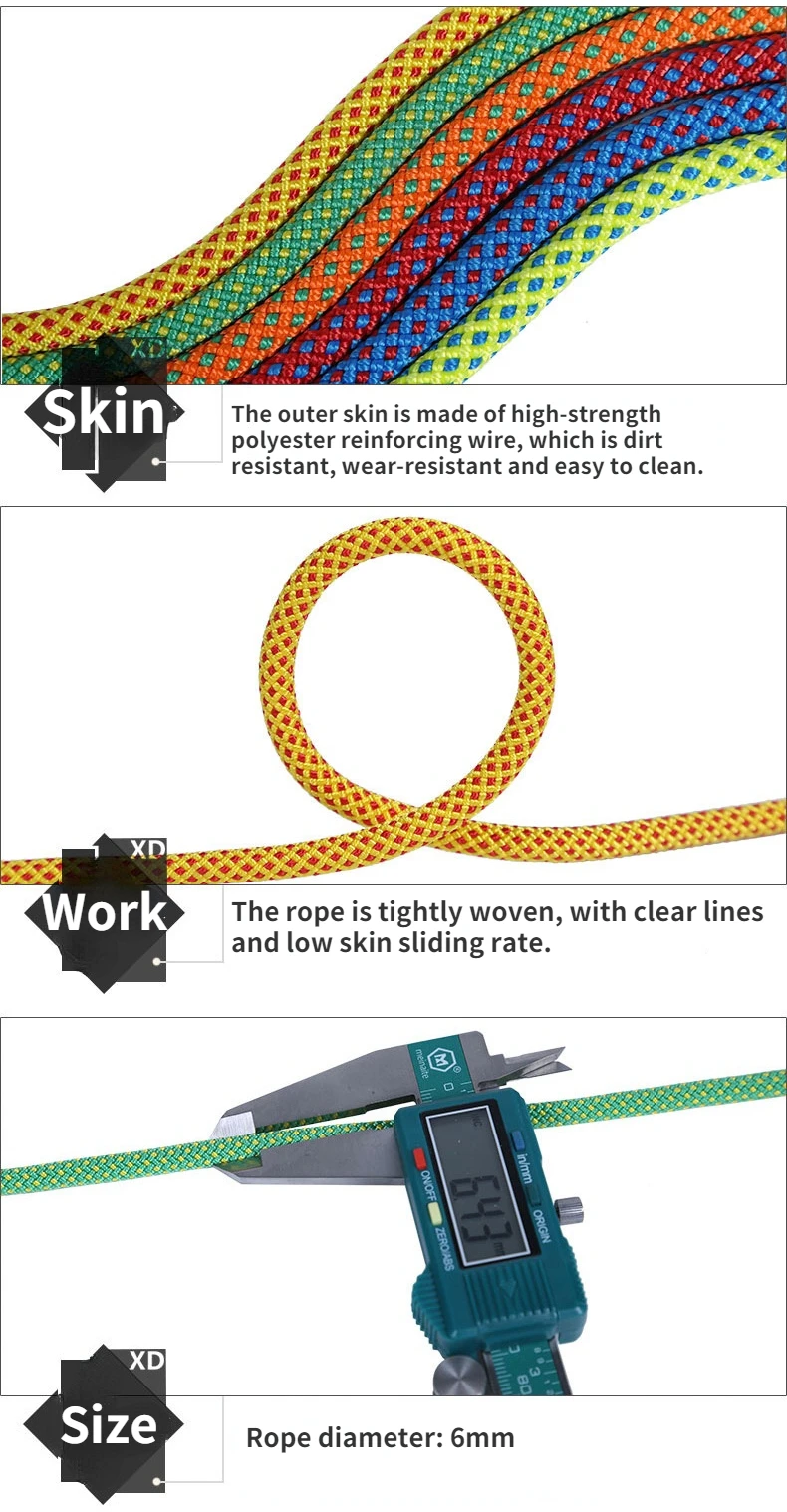 First, the rope is crafted from high-strength materials, giving it excellent load-bearing capacity and wear resistance. In addition, the 6mm diameter ensures a balance between flexibility and sturdiness, making it easy to handle while staying tough under pressure.