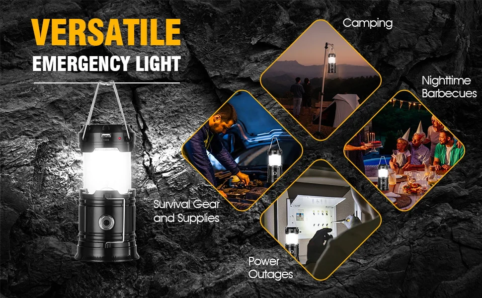 This lantern is designed for convenience and versatility. Charge it via USB or let it recharge using solar energy. It provides you with bright, reliable light, even without the need for batteries or electrical outlets. This means you’re always ready for your next adventure, whether it’s a weekend camping trip or an emergency situation.