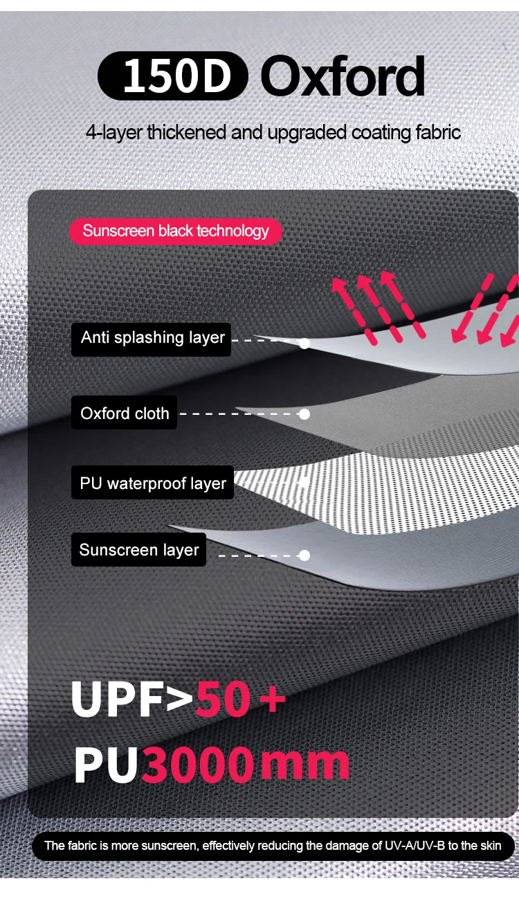 The tent’s outer layer features 150D Oxford fabric with a silver coating, providing excellent waterproofing and UV resistance. This durable material keeps you dry during wet weather and shields you from harmful sun rays. Additionally, the silver coating enhances fabric longevity and prevents fading, making the tent ideal for extended outdoor use.