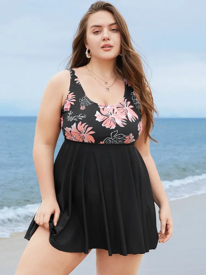 Floral Print Scoop Neck Sculpt Waist Swim Dress