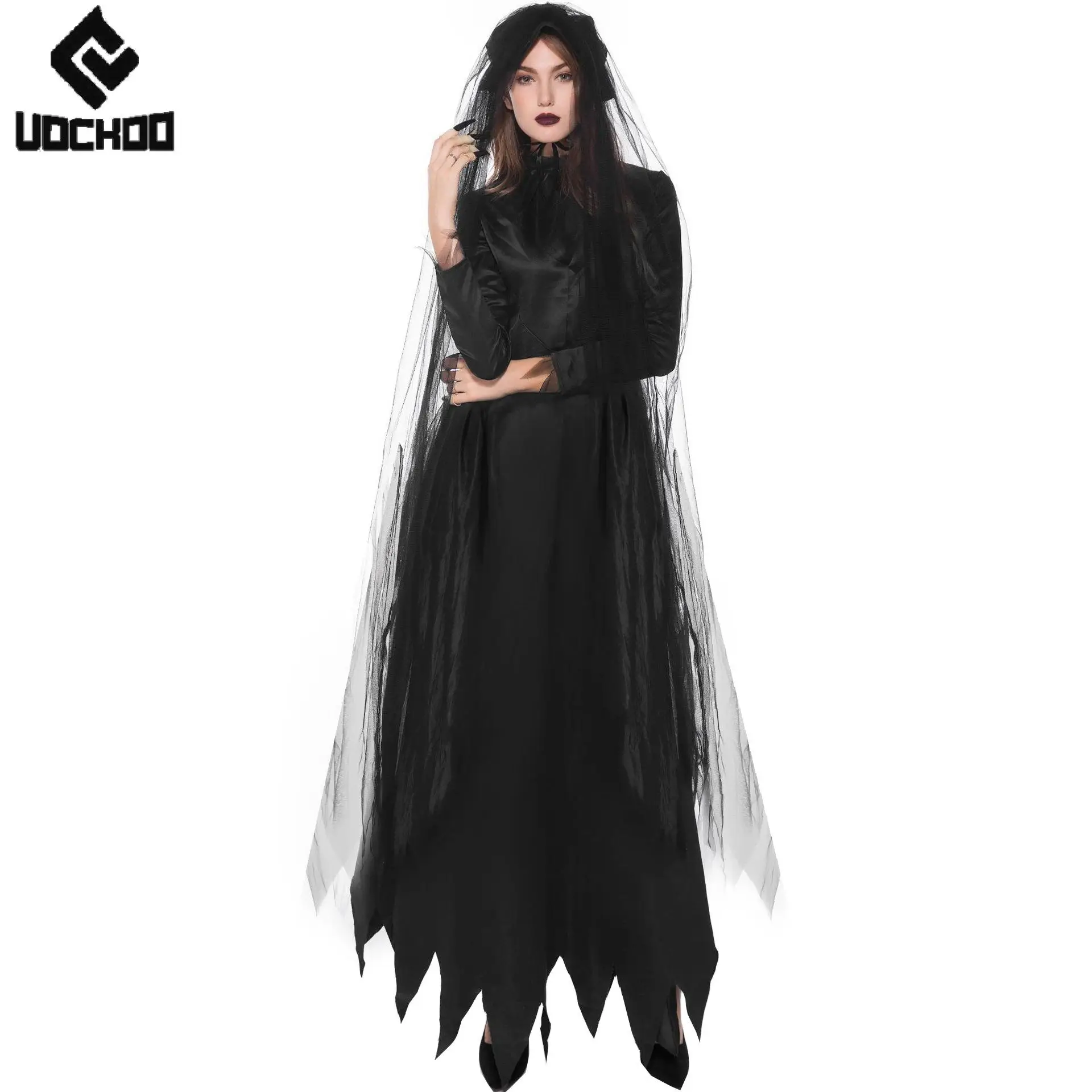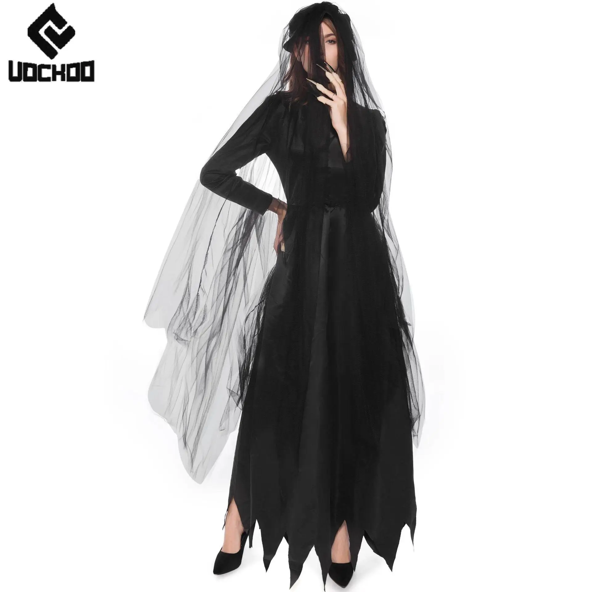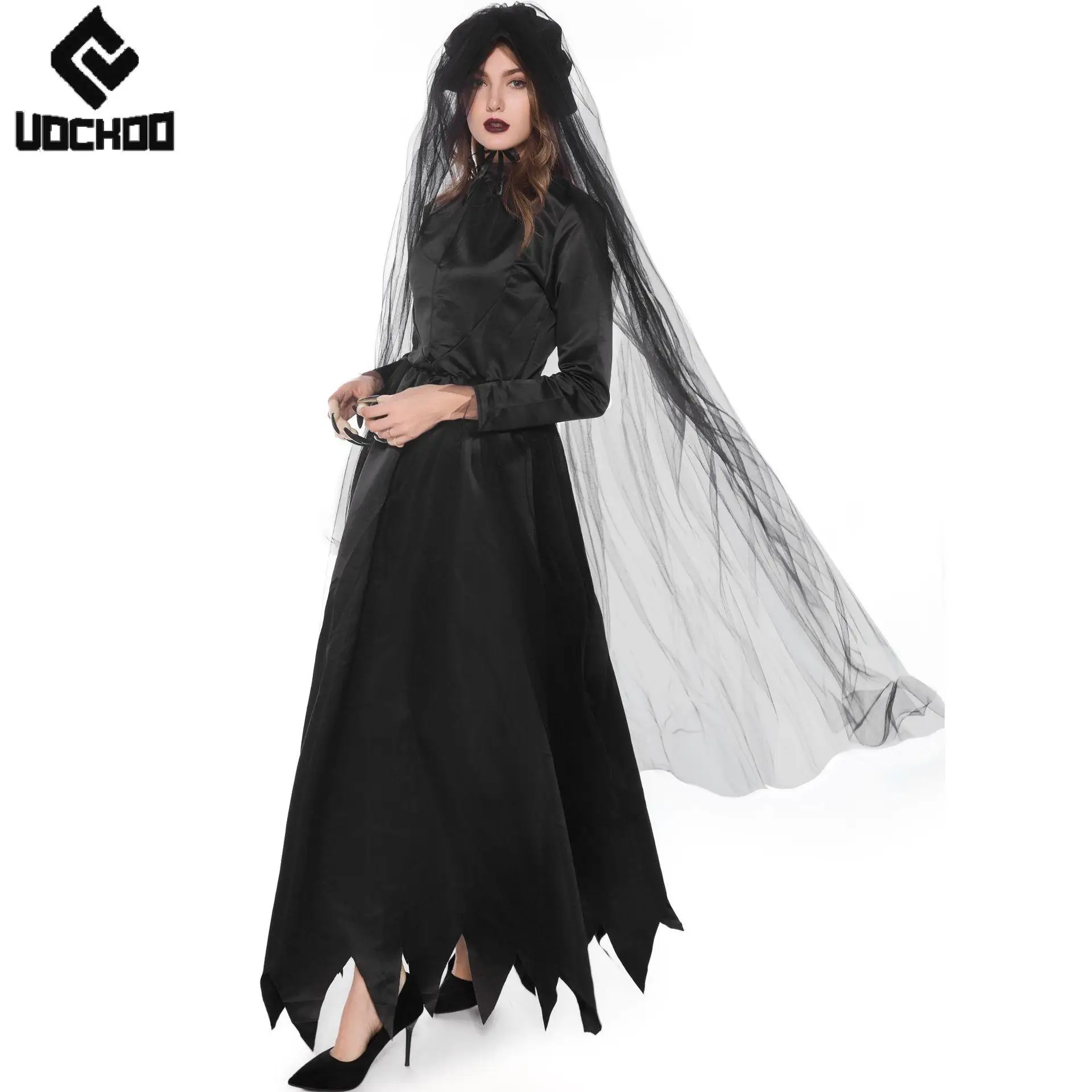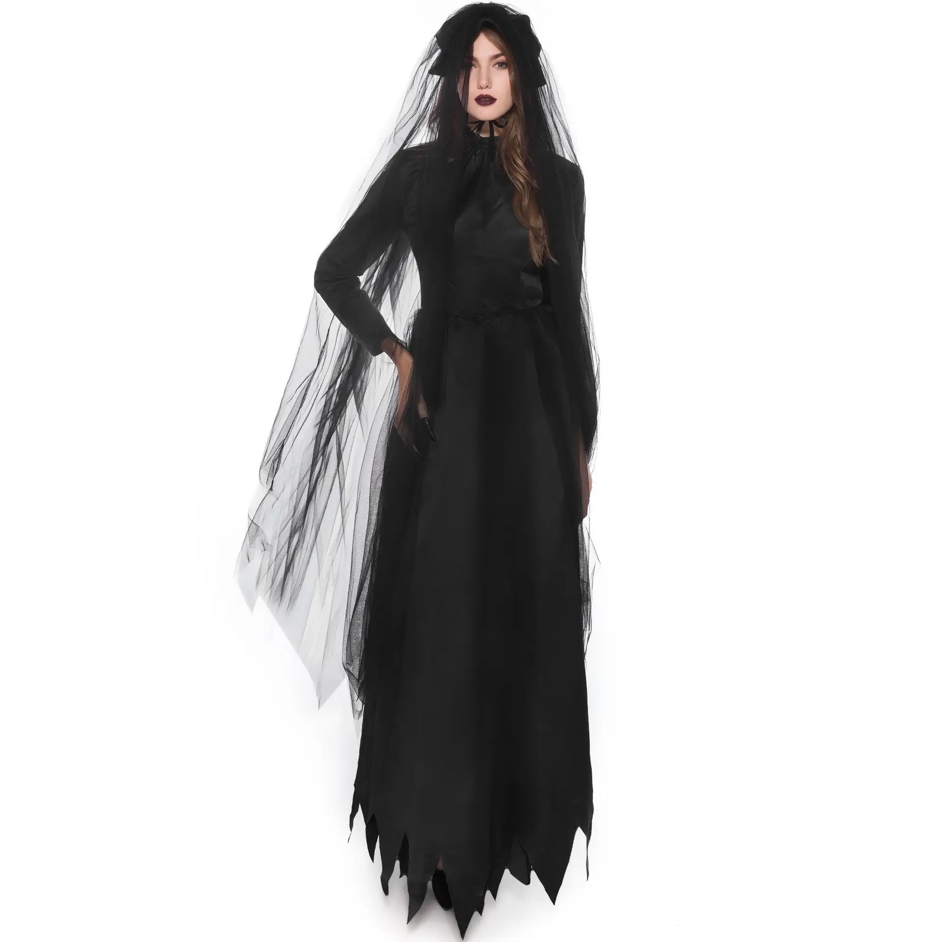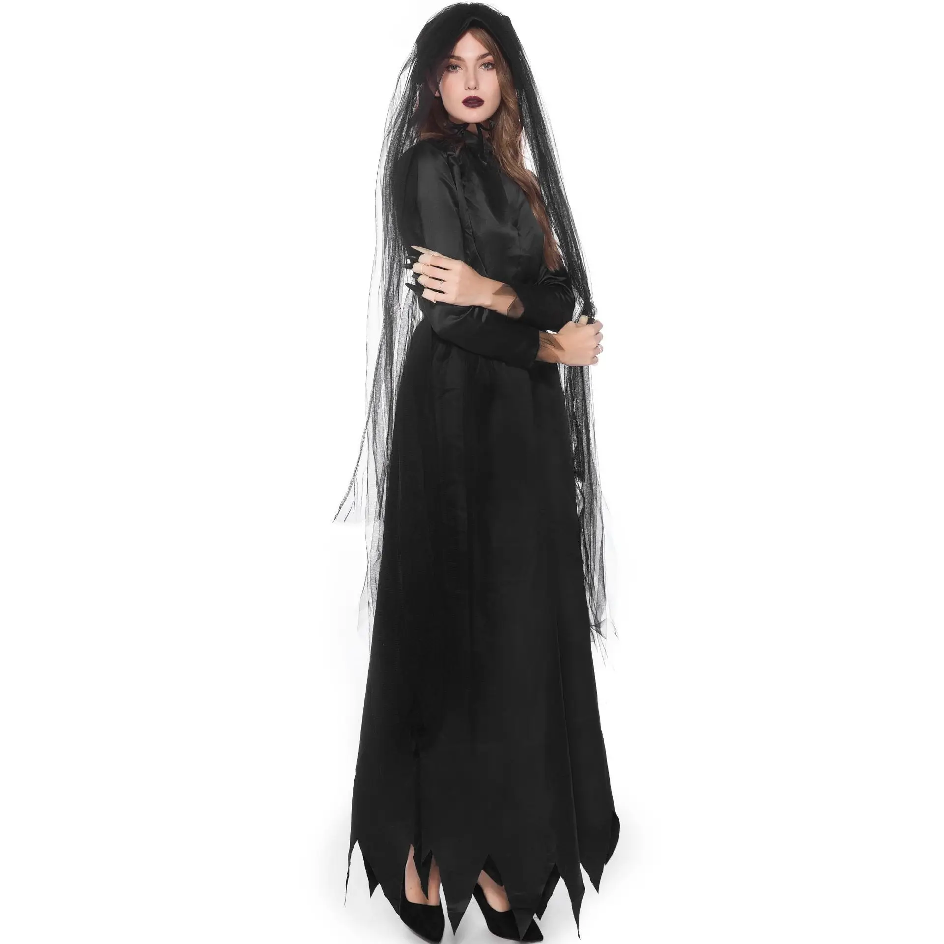 Make an unforgettable entrance with the Black Ghost Bride Witch Veil Costume. Whether you embody a dark bride, demon queen, or mysterious sorceress, this gown transforms you into the ultimate vision of haunting beauty.