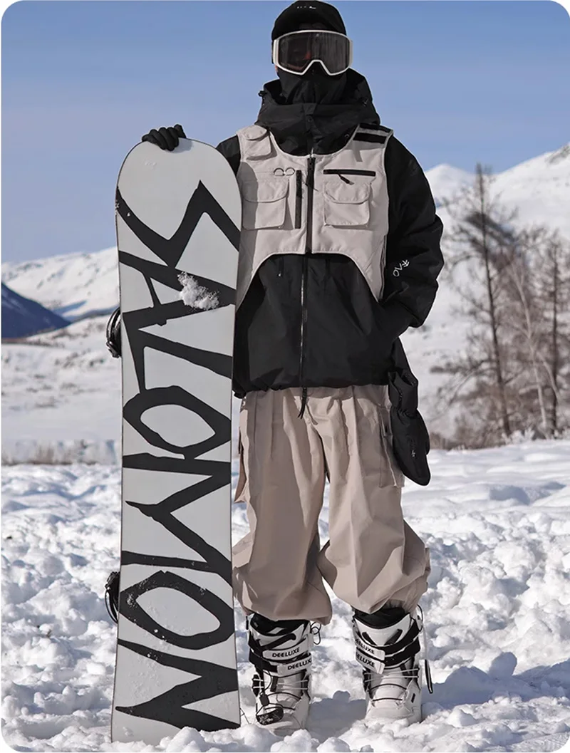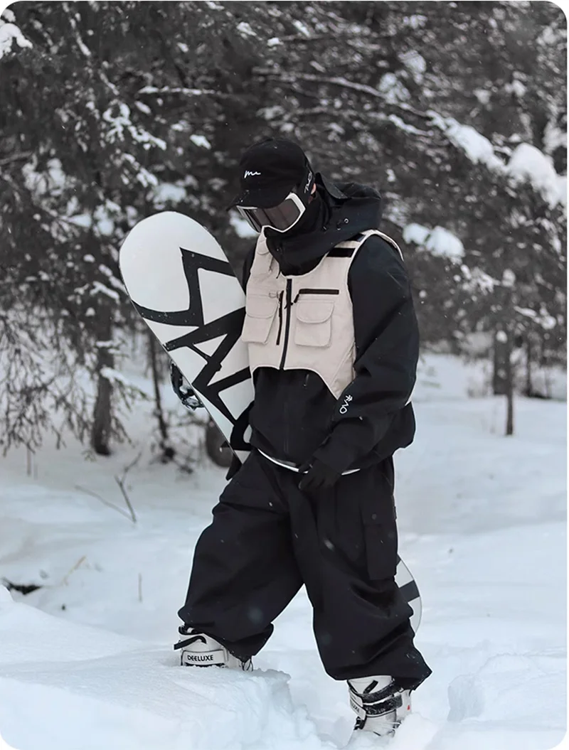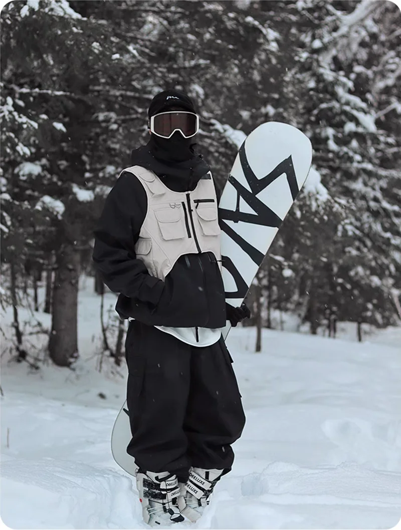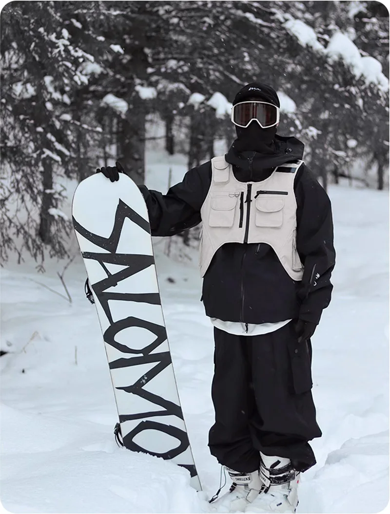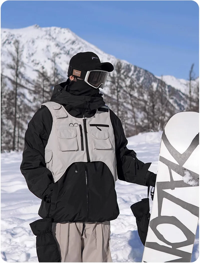 Stay dry. Stay ready. Master every slope with the Waterproof 3-Layers Multi-pocket Ski Waistcoat.