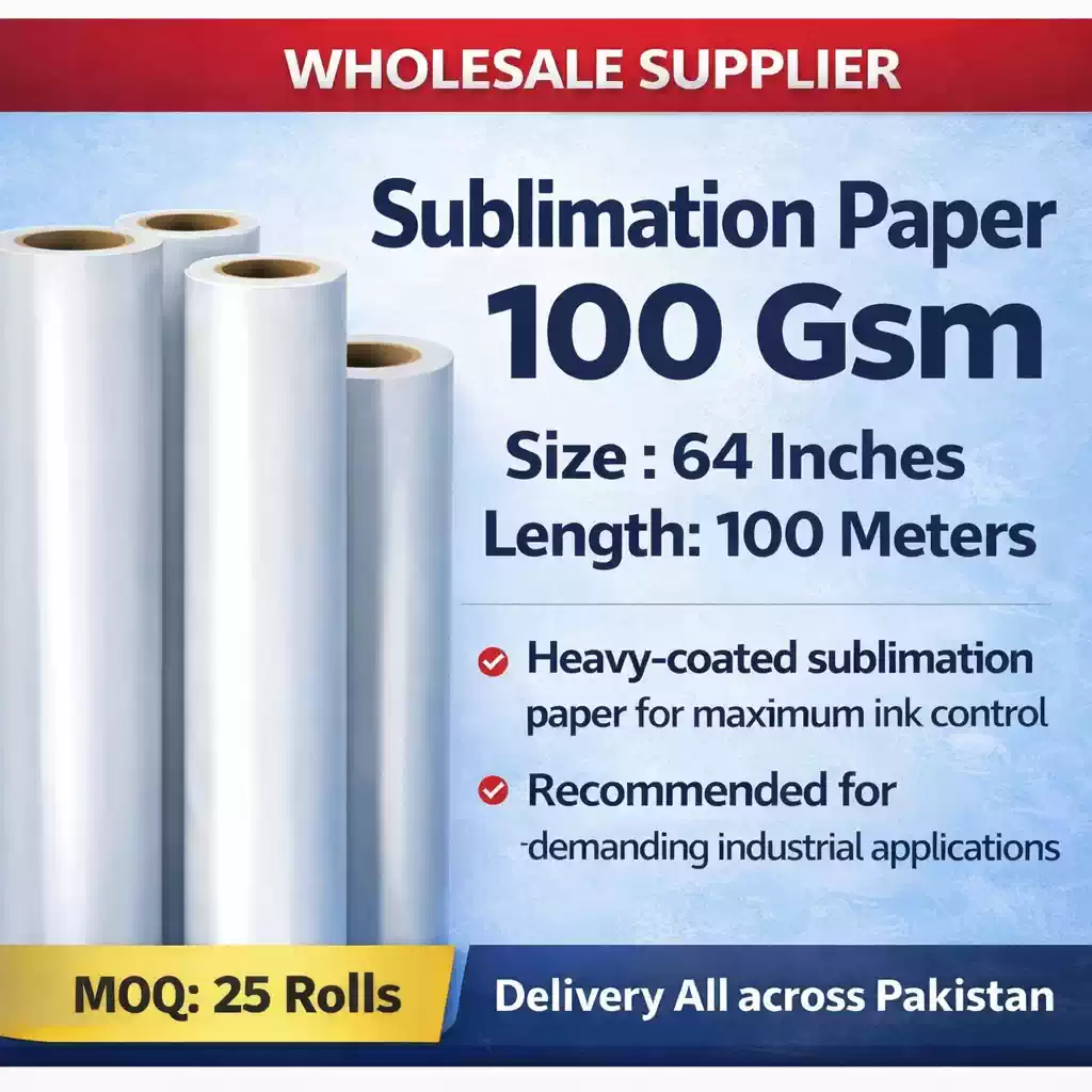 If you are looking for sublimation paper in Pakistan with consistent quality and reliable results, this 100 GSM paper is widely used by print shops, custom apparel businesses, and sublimation professionals.