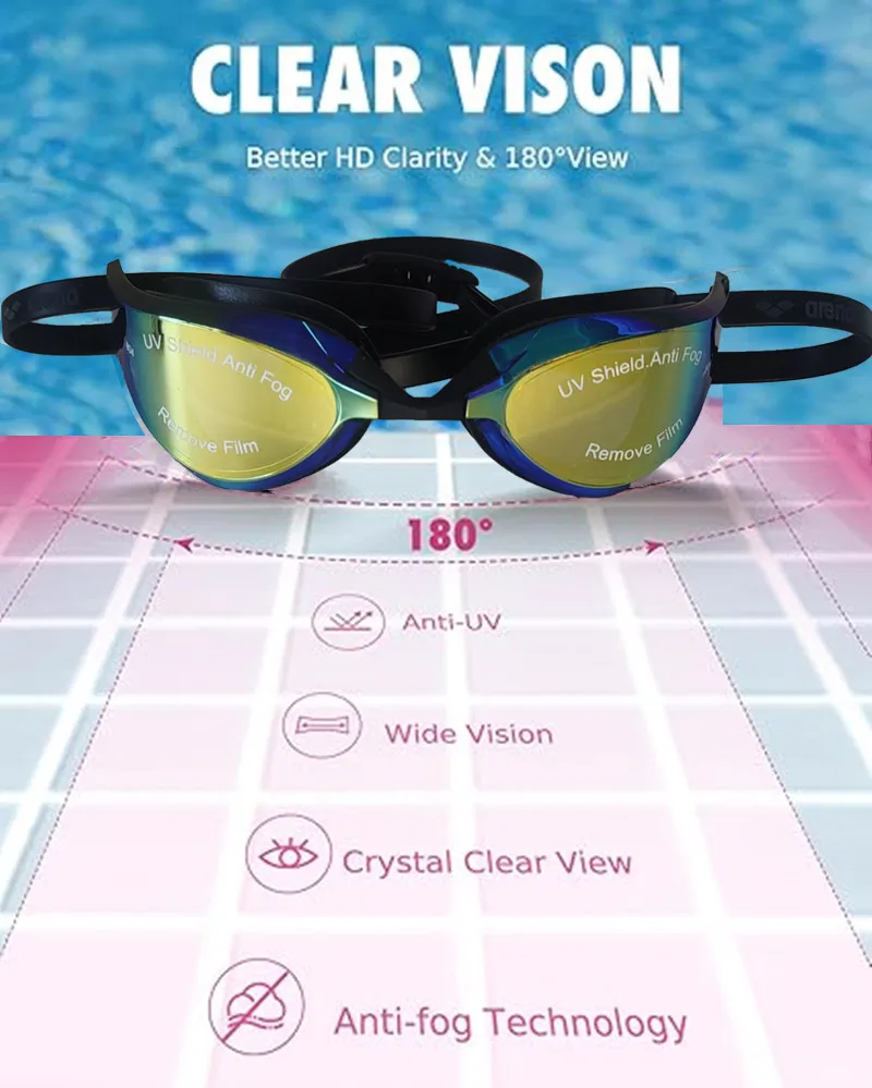 The ARENA goggles also offer versatility. Their sleek, unisex design works well for both men and women. Plus, they come with a compact, protective case to keep them safe and scratch-free in your swim bag.In summary, the ARENA Professional UV Protection Goggles combine cutting-edge lens technology with racing-grade design. With features like HD clarity, anti-fog performance, UV protection, and a watertight fit, they’re built for serious swimmers who don’t want to compromise. Whether you’re racing, training, or simply swimming for fitness, these goggles offer the performance and comfort you need to excel in the water. Equip yourself with the right gear—swim harder, see clearer, and stay protected.