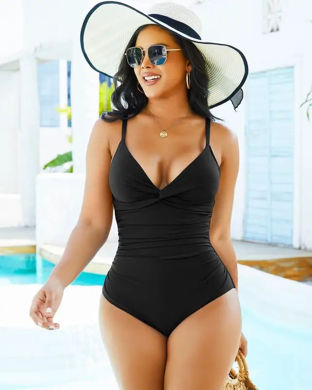 First and foremost, the deep V-neck design adds a touch of sophistication, instantly elevating your beachwear look. Not only does it enhance your neckline, but it also flatters your natural curves, giving you a confident, feminine silhouette. Additionally, the built-in tummy control panel smooths and shapes your midsection, offering a sleek and supportive fit that moves with you.