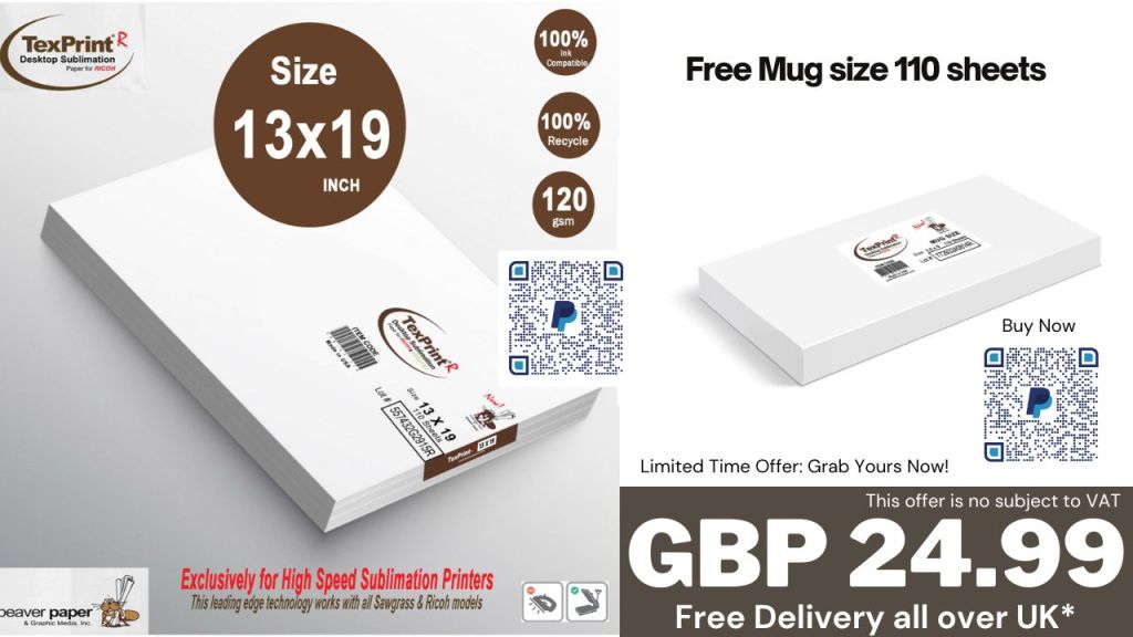 Elevate your sublimation printing experience with 8.5×14 Inch TexPrint R Sublimation Paper – where innovation meets sustainability, and your creativity takes center stage. Order now and transform your prints into vibrant, lasting masterpieces!